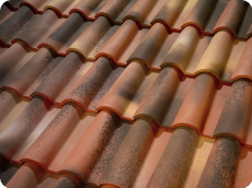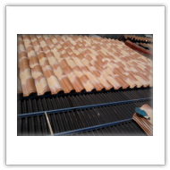 Las tejas curvas son elementos de perfil bastante plano presenta una o mas, generalmente dos acanaladuras, que facilitan la escorrentía. Esta inspirada para lugares donde las lluvias y las nieves son mas abundantes.